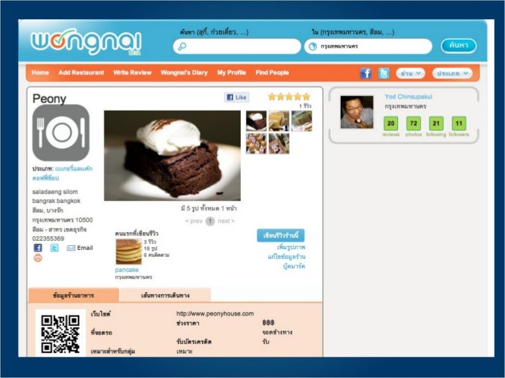 สำหรับเจ้าตัวเว็บไซต์ที่มีชื่อว่า www.wongnai.com นั้นเราสามารถเข้าไปชมการ ริวิว ร้านอาหาร รวมถึง ใช้ในการค้นคว้าหาร้านอาหาร บริเวณใกล้ๆกับที่เราอยู่อาศัย หรือ ต้องการทราบถึงบรรยากาศ การตกแต่ง สไตล์ และรวมถึง การพูดคุย หรือ การคอมเม้นท์ สถานที่ร้านอาหารเหล่านั้นด้วย